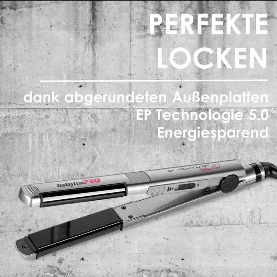 Das Glätteisen Ultra Curl von BaByliss PRO ist das beste Frisiergerät zum Glätten oder Stylen. Weil die Glättplatten schwebend aufgehängt sind, folgen sie perfekt der Haarlocke. Die verbesserten Gleiteigenschaften sorgen für zusätzlichen Schutz des Haars während des Stylens.