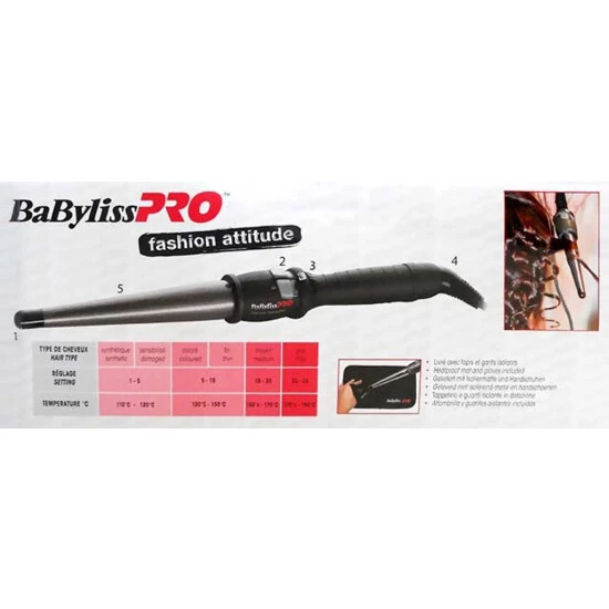 Mit den konischen Lockenstäben von BaBylissPRO können mit nur einem Tool verschiedene Lockenstyles kreiert werden – von sanften, natürlichen Wellen bis hin zu definierten Locken. Durch die besondere Kegelform variiert der Durchmesser der Heizstabs von 13 mm bis 25 mm und ist dadurch perfekt für verschiedene Styles und Lockenarten, wie Fringe Looks oder Beach Waves, geeignet. Dank der 25 Temperaturstufen zwischen 110°C und 200°C kann der Lockenstab sowohl für brüchiges, feines und koloriertes Haar als auch dickes, lockiges oder krauses Haar verwendet werden.