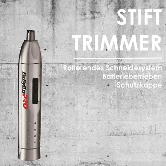Der BaBylissPRO Nasen- und Ohrenhaartrimmer ist das Must-Have für einen gepflegten Look. Dank des Batteriebetriebs und der Schutzkappe ist der Trimmer Ihr idealer Begleiter auf Reisen und für unterwegs. Mit dem rotierendem Schneidsystem können schnell und sicher unerwünschte Nasenhaare sowie Ohrenhaare entfernt werden.