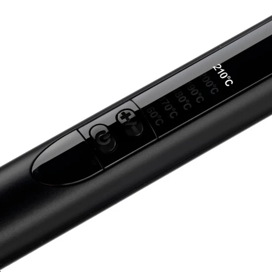 Einfaches Aufwickeln der Haare um den Lockenstab, während die Spitze nach unten zeigt. Der extra lange Stab mit Quarz-Keramik Beschichtung eignet sich ideal für langes Haar.